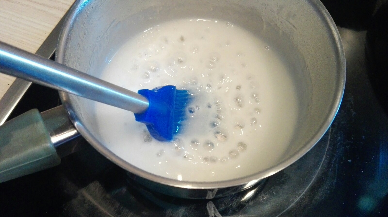 Eine Stunde vor Ende der Gehzeit habe ich das Roo-Mal angesetzt. Hierzu das Wasser mit dem Mehl aufkochen bis sich eine kleisterähnliche Masse entstanden ist.