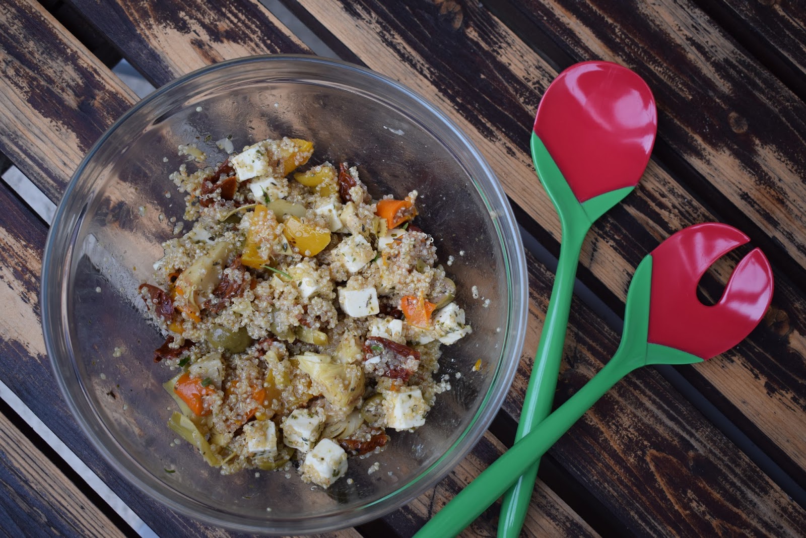Ich hatte vor einigen Jahren einen Antipasti Salat gemacht, allerdings mit Nudeln. Und beim Einkaufen dachte ich mir, dass dies bestimmt auch mit Quinoa sehr gut schmecken würde.