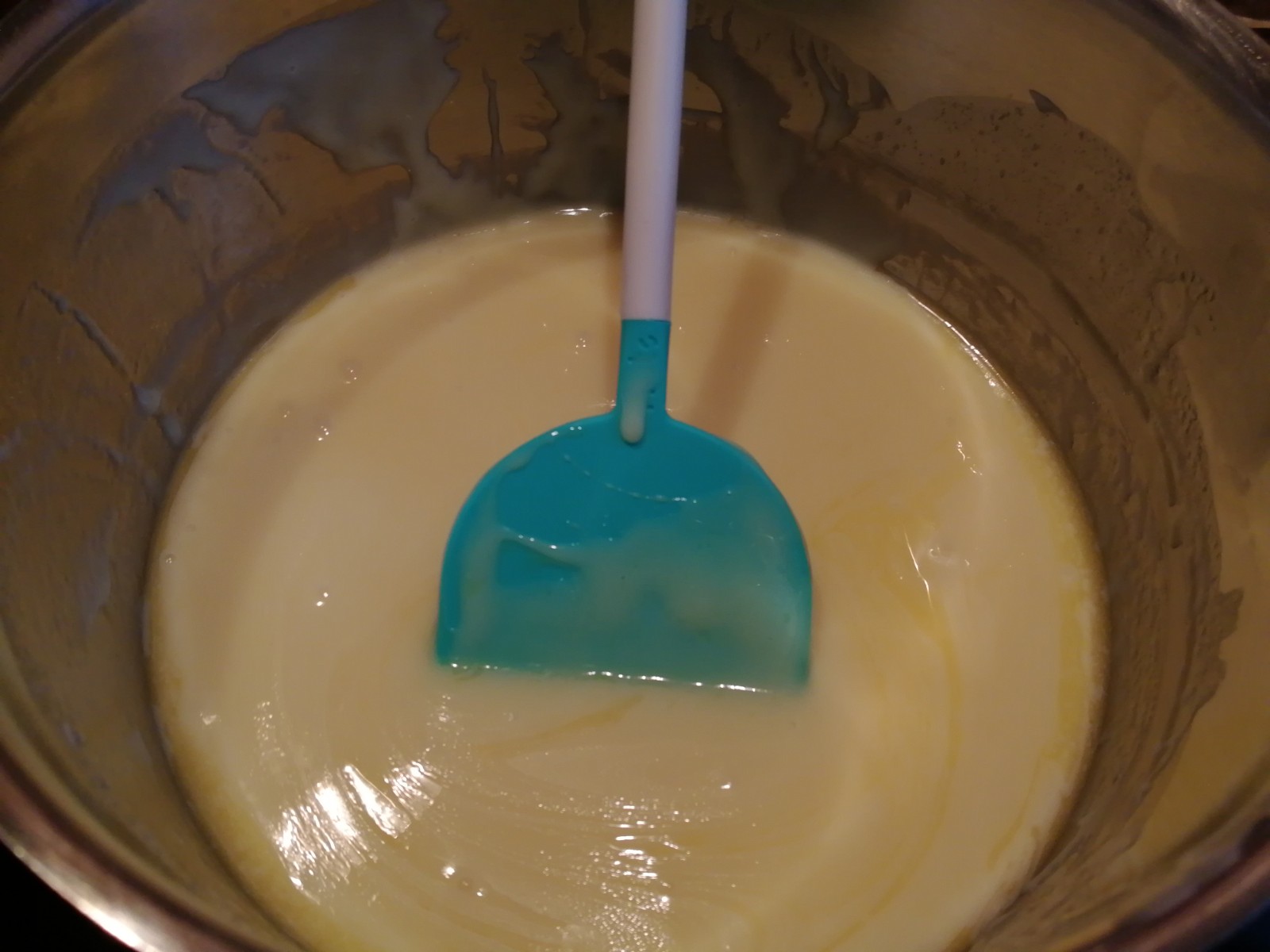 Sobald die Masse dickflüssig geworden ist, den Topf vom Herd nehmen und etwas abkühlen lassen.