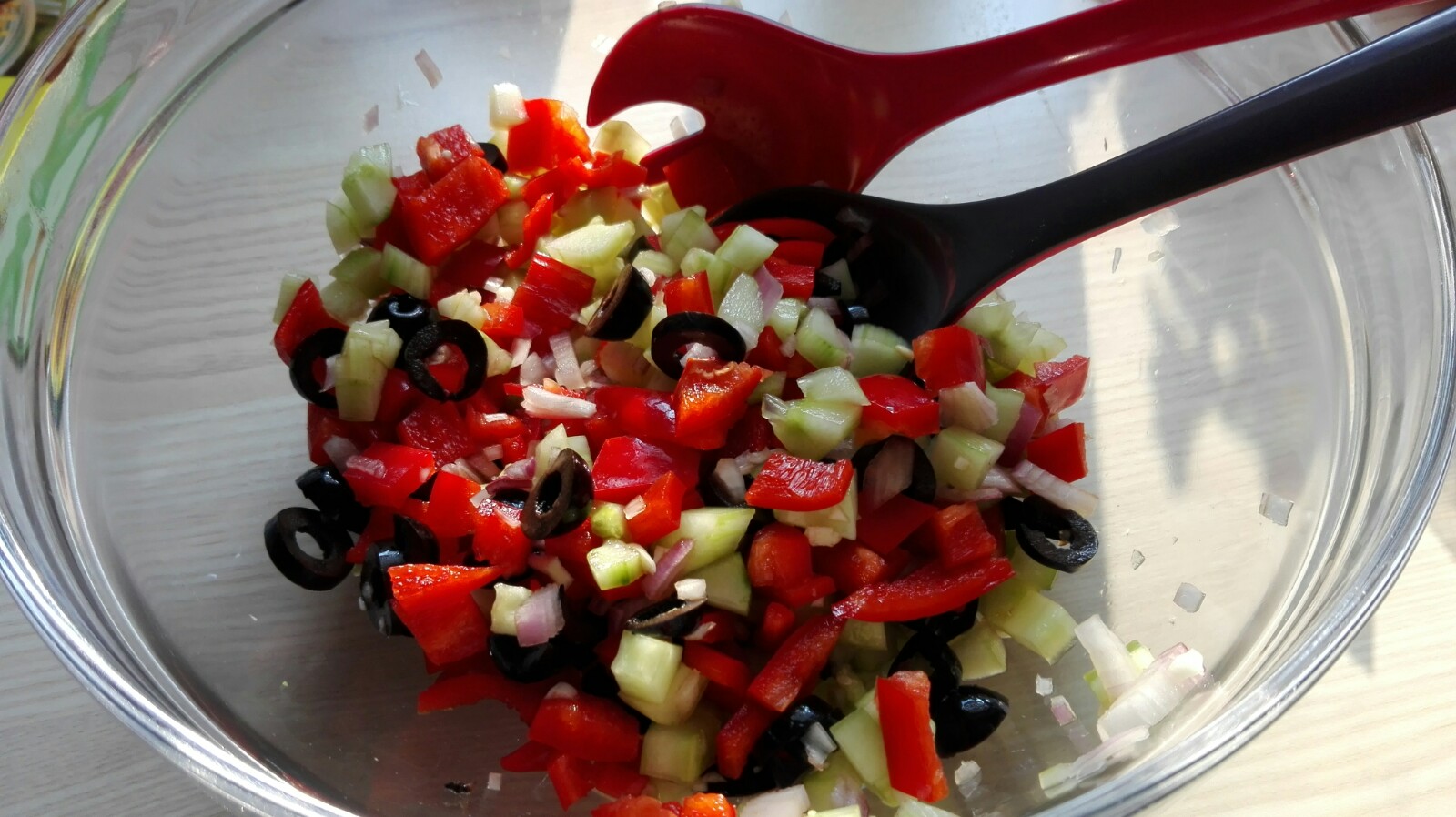 Daher würde ich sagen, Orient meets Italy trifft es hier ganz gut. Und der Salat schmeckt einfach nach Urlaub und nach mehr 🙂 Und ist dabei nicht mal sehr aufwendig.