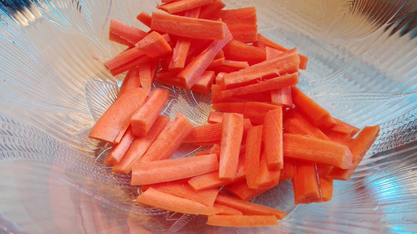 Paprika waschen und ebenfalls in Streifen schneiden.