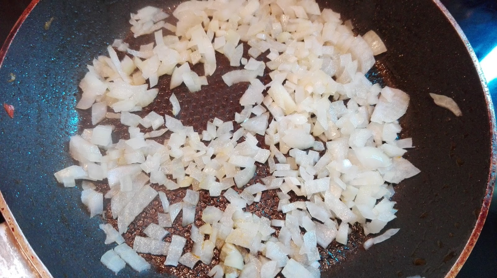 Paprika in kleine Stücke schneiden und mit dem Öl in einer Pfanne anbraten. Wenn die Paprika angeschmort sind, in eine Schüssel geben. Anschließend die kleingeschnittene Zwiebel ebenfalls glasig anbraten. Das Öl mit der Zwiebel mit in die Schüssel geben.