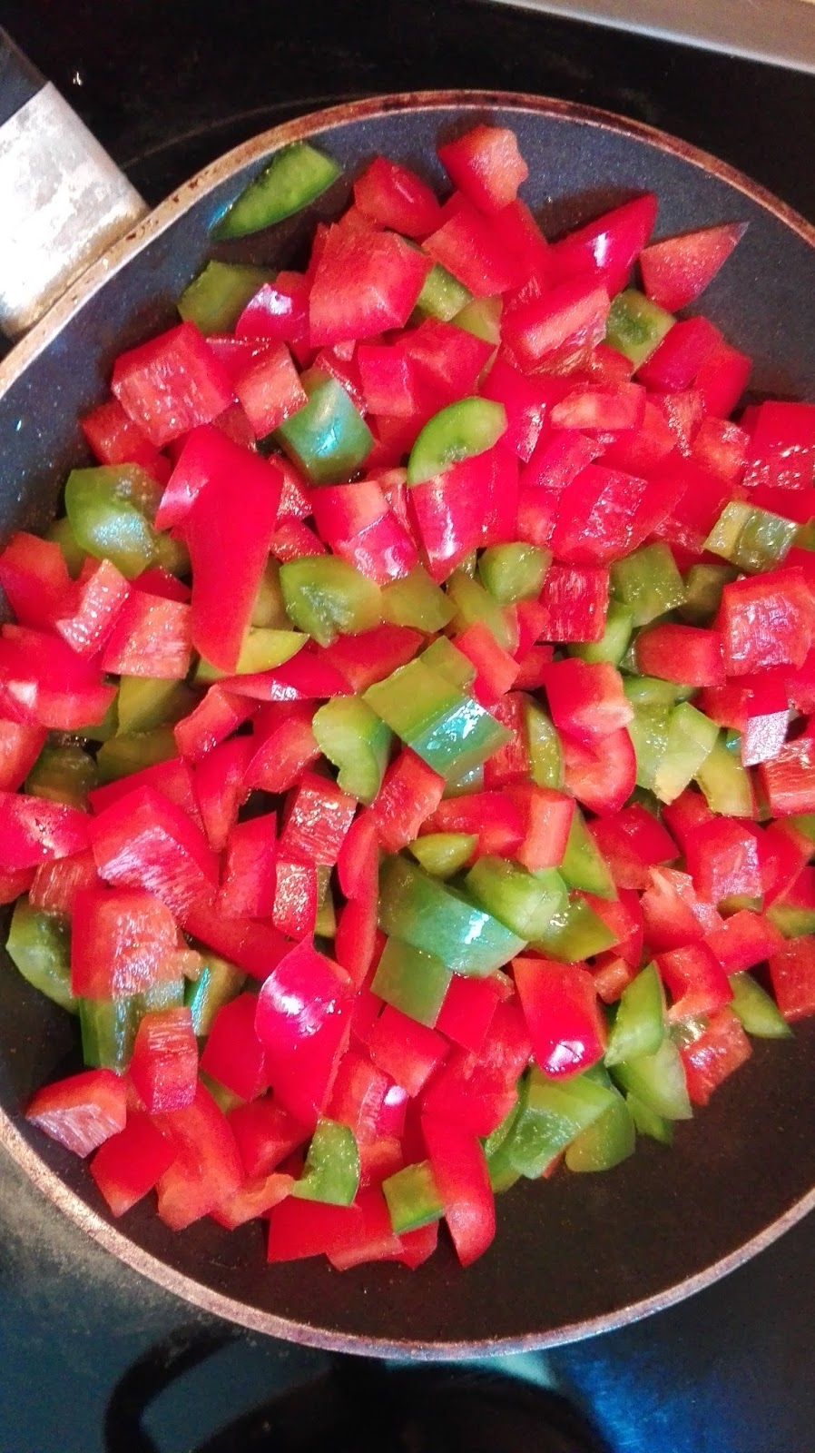 Mehr Öl gebe ich dem Salat nicht zu, aber durch das anbraten bekommen die Paprika eine leichte süße Note und auch das Öl wird etwas aromatischer.