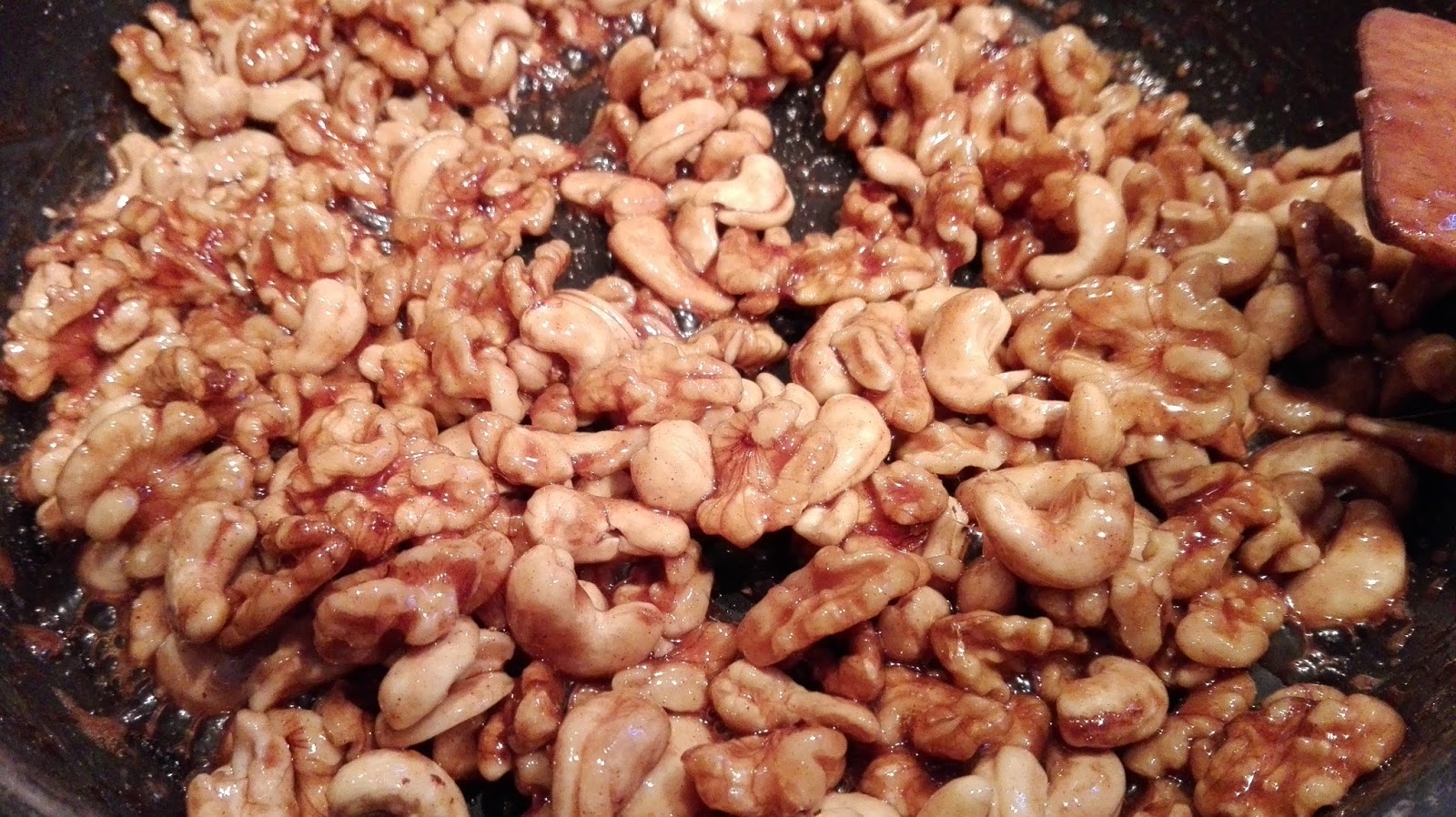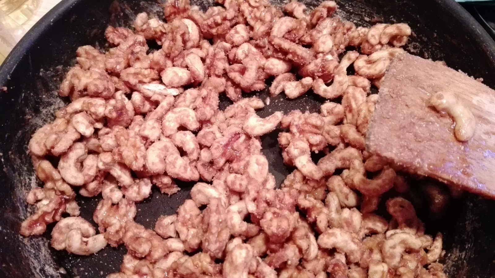 Nun die Hitze reduzieren, sonst verbrennen die Nüsse dann zu schnell.