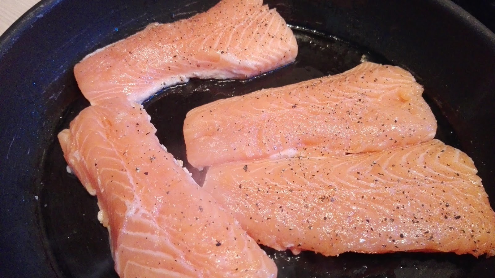 Schon hat man ein leckeres Lachsfilet und es gibt für mich nichts besseres als eine krosse Haut 🙂 Deswegen ist bei mir der Fisch oder generell das gebratene etwas dunkler. Aber das kann ja jeder nach seinen Vorlieben braten.