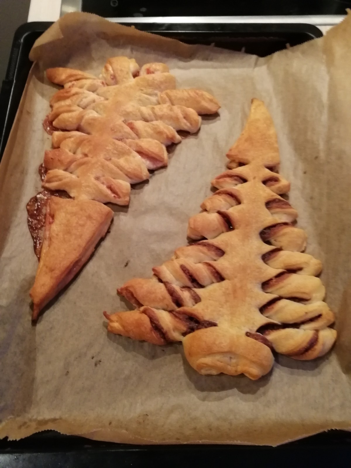 Den Tannenbaum kennt man ja schon mit Blätterteig aber mit den Croissant-Teig werden sie für mich einfach etwas Frühstückstauglicher.