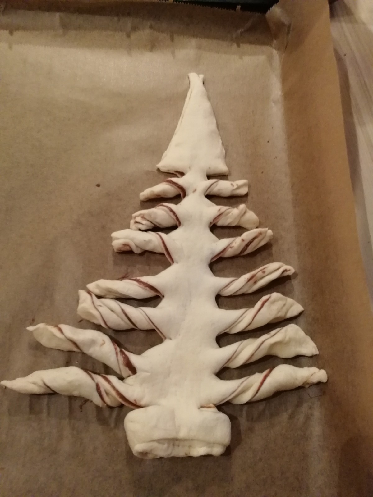 Tipp: natürlich kann man den Tannenbaum auch mit einer herzhaften Füllung zubereiten. Als Pizza kann ich es mir gut vorstellen, bzw. es würde eher einer Calzone ähneln oder einfach mit Pesto und Parmesan füllen 🙂 Ach, da gibt es so viele tolle Möglichkeiten. Einfach mal der Fantasie freien lauf lassen.