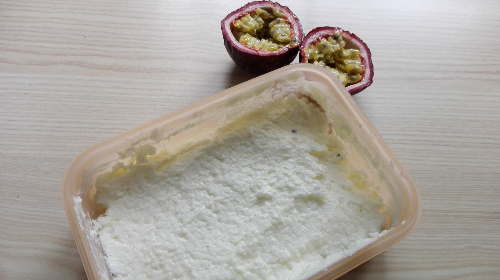 Und dann ist der Frozen Yogurt mit Maracuja schon fertig. Der Geschmack erinnert an das Eis Split. Sehr erfrischend und lecker.