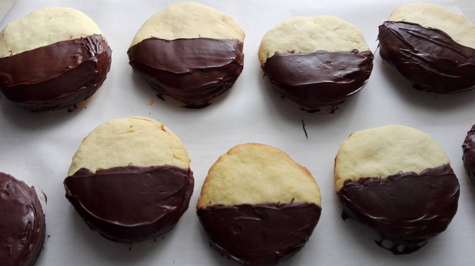 Kuvertüre (ich habe Zartbitter genommen – ich mag den Kontrast aus der säuerlichen Marmelade und dem Geschmack von Zartbitter-Kuvertüre sehr gerne.