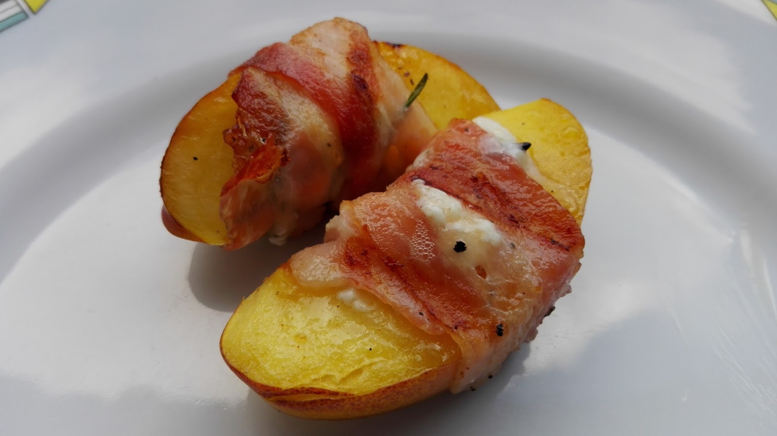 Und ich muss sagen, diese Kombination ist der Wahnsinn. Durch das grillen wird der Pfirsich etwas wich und gibt wahnsinnig viel süße ab. Der salzige Speck und der cremige Frischkäse runden das ganze noch ab.