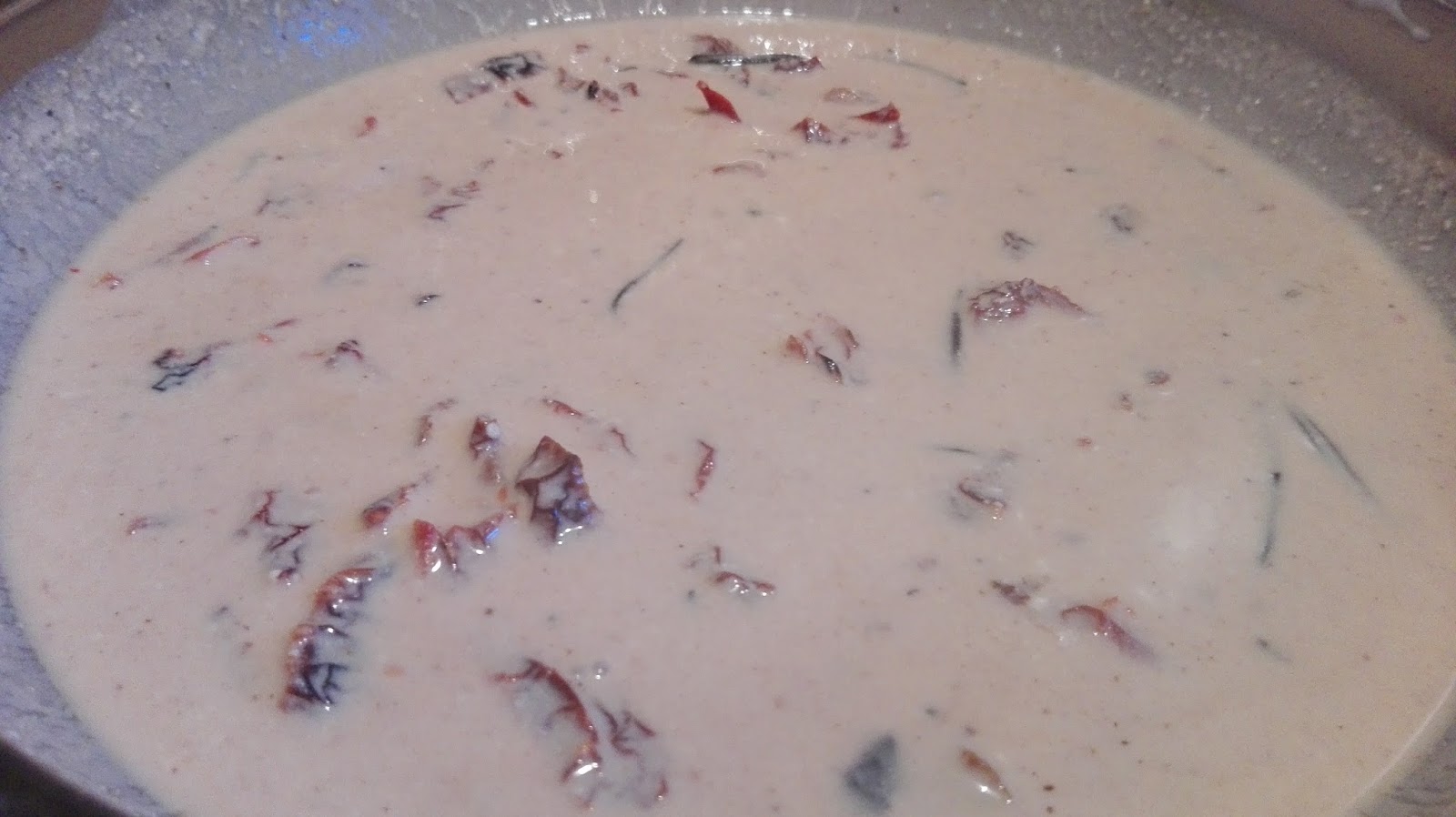 Die Weißweinsoße lässt sich natürlich auch ohne Fleischeinlage zubereiten, es fehlt dann etwas an den Röstaromen, aber ist genauso lecker und Vegetarier sollen ja auch auf ihre Kosten kommen.