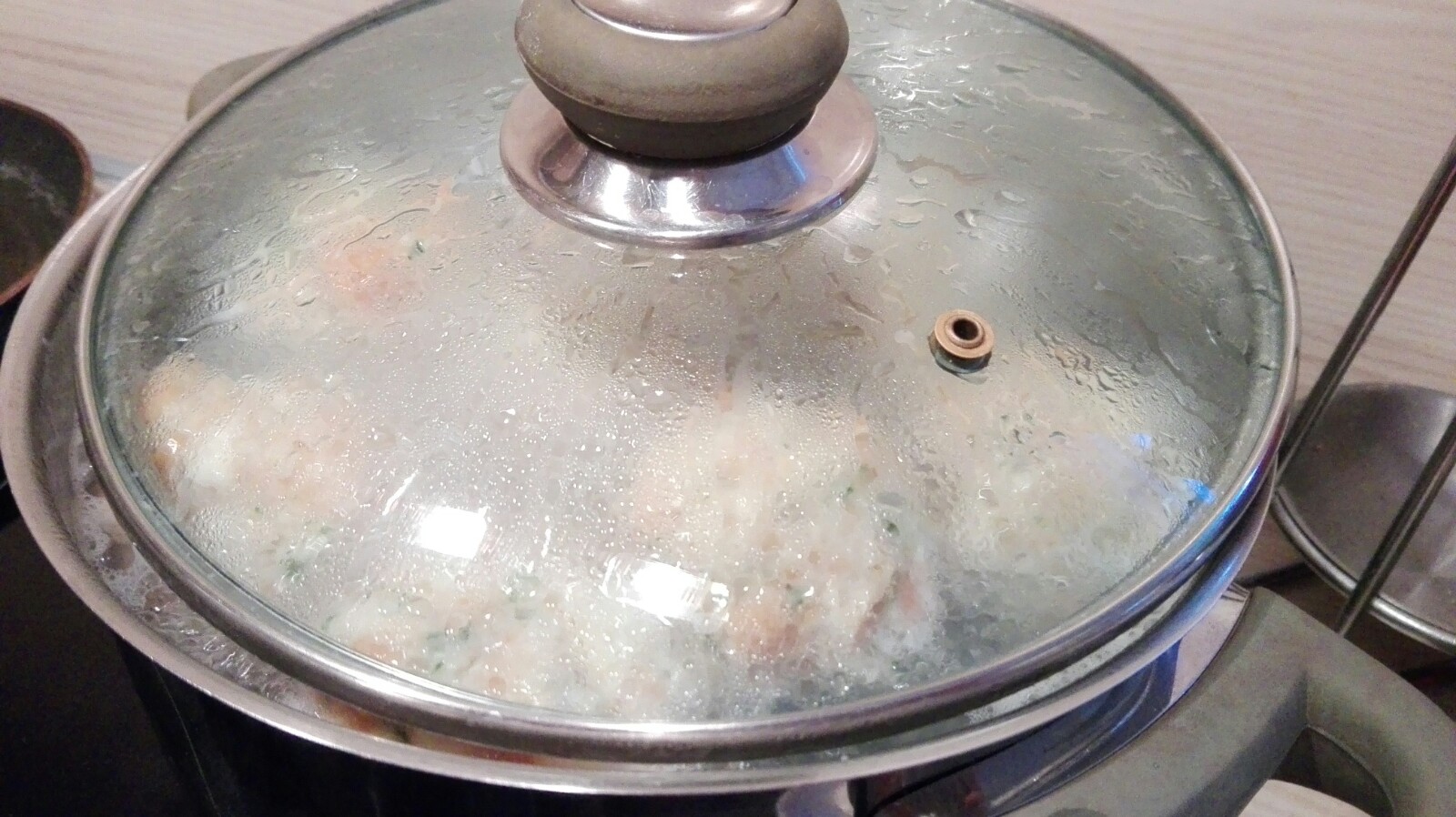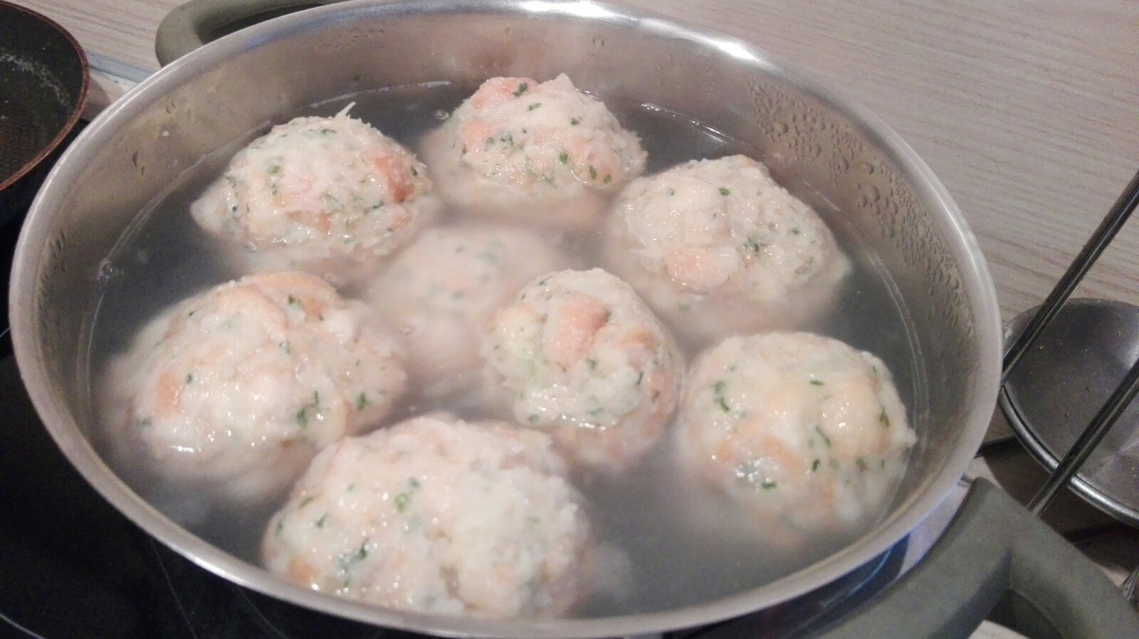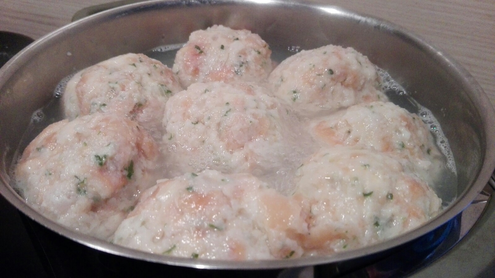 Hitze reduzieren, Wasser soll nur noch leicht köcheln. Die Semmelknödel benötigen ca. 15 Minuten bis sie fertig sind.