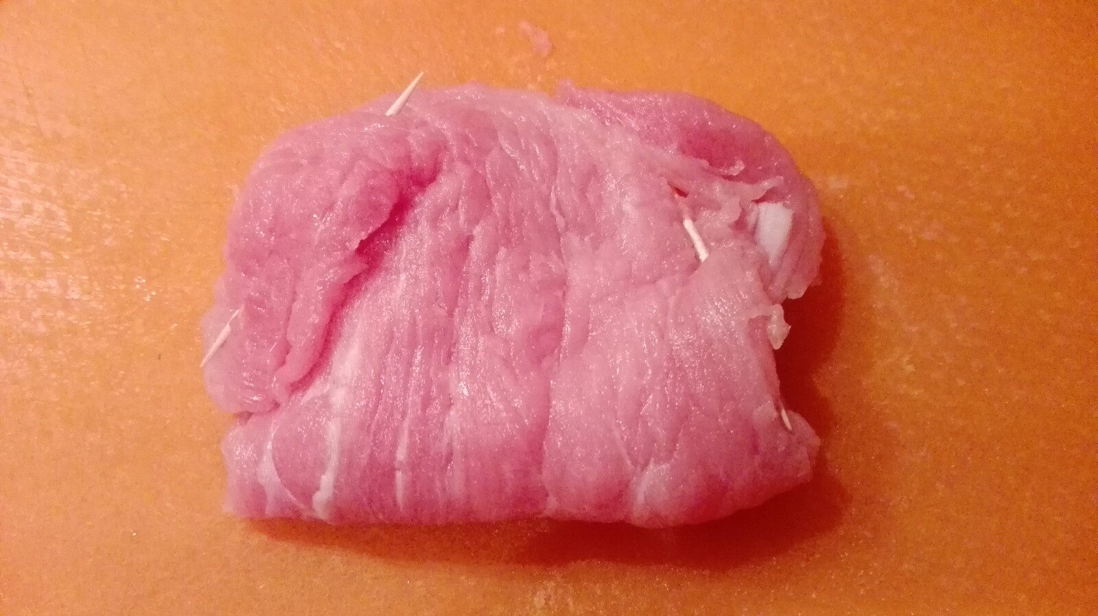 Die Seiten mit Rouladennadeln oder Zahnstocher fixieren.