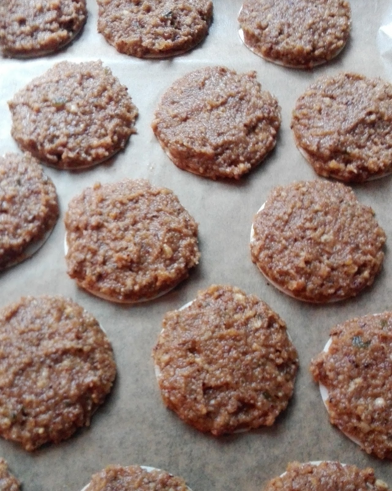 Auf ein mit Backpapier ausgelegtes Backblech geben. Man muss nicht sehr viel Abstand halten, sie gehen etwas auf, verlaufen aber nicht.