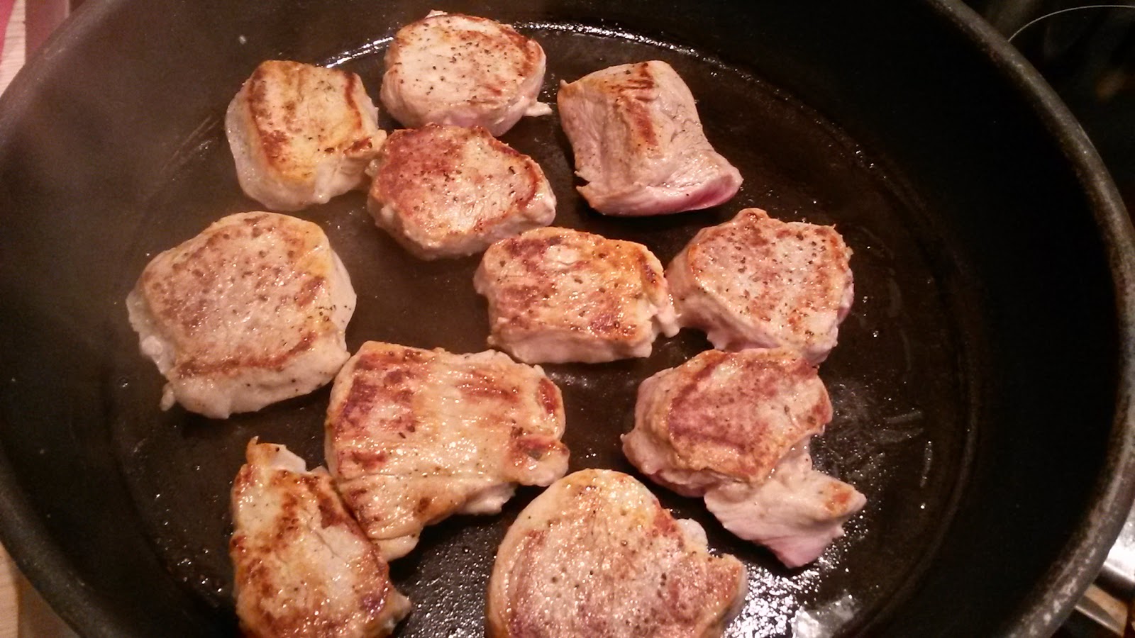 Aber nur Spätzle sind ja auch nix und da ist mir eingefallen, dass wir die Tomaten-Weißwein Soße schon lange nicht mehr gemacht haben und dazu passt natürlich Fleisch. Und da es Sonntag ist, sollte es etwas besonderes sein. Also wurde eine Schweinelende gekauft 🙂