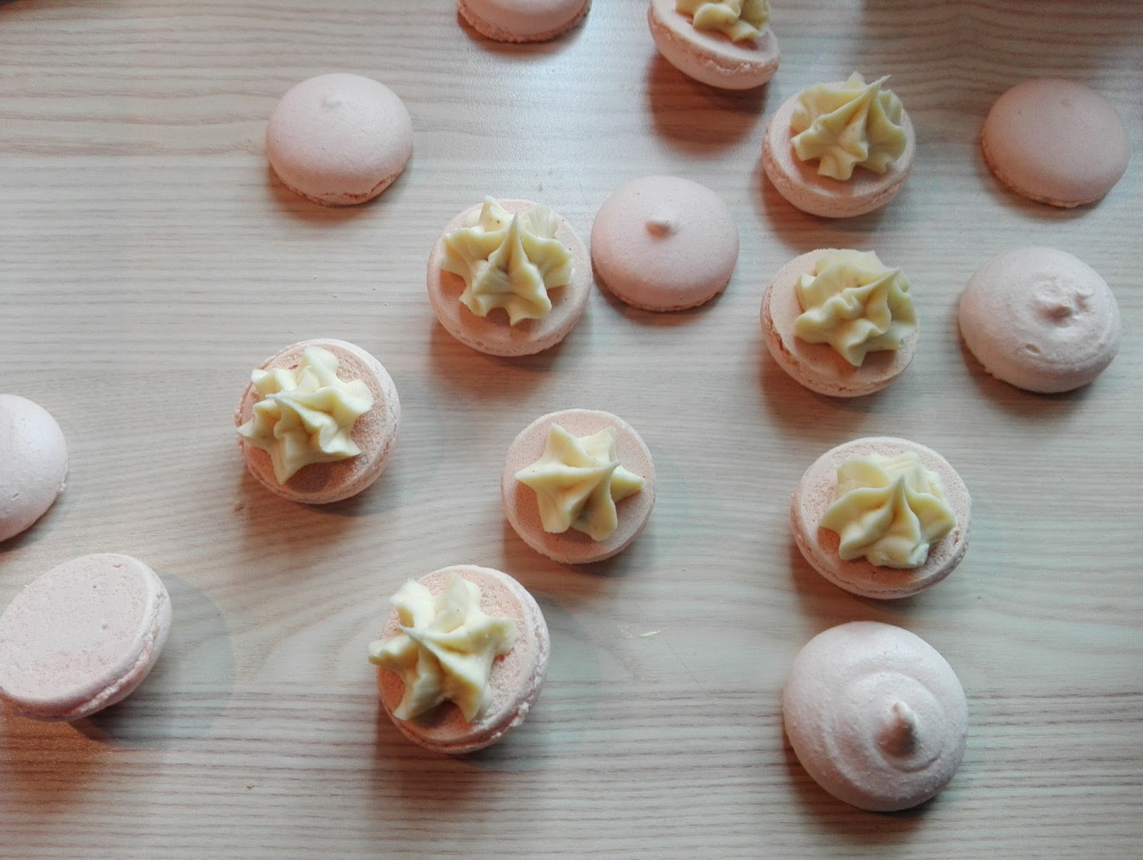 Wie man die Macaron Schalen mit italienischem Meringue herstellt findet ihr hier: