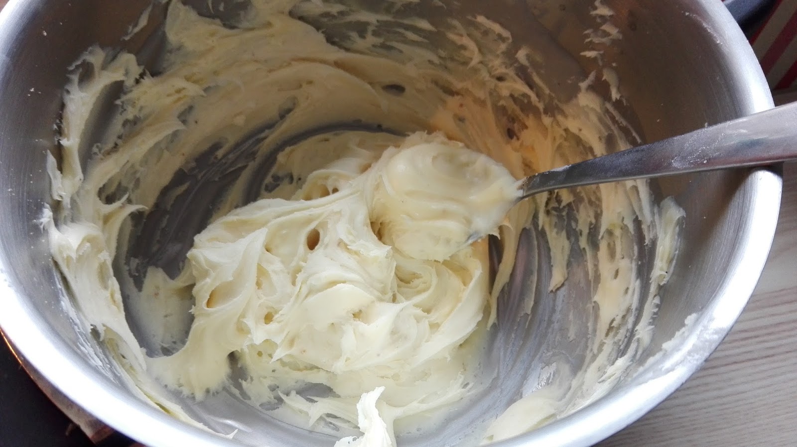 Anschließend mit einem Schneebesen aufschlagen und in einen Spritzbeutel füllen und auf die Macarons aufspritzen.