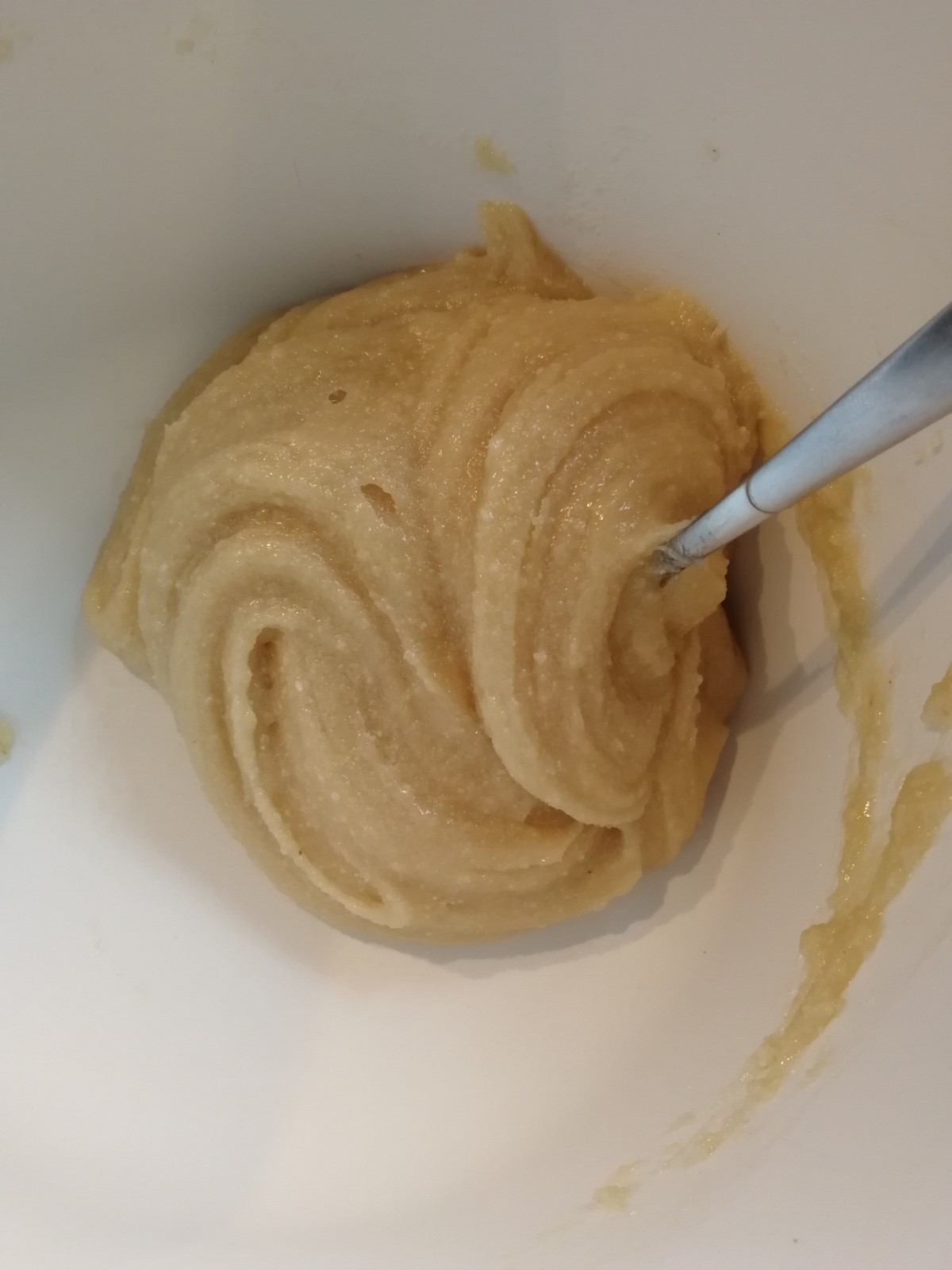 Nun die Eier trennen, Eiweiß auffangen und 60g zu der Mandel-Zucker Mischung geben. Etwas Vanilleessenz dazu geben und alles zu einer zähen Teig verarbeiten.