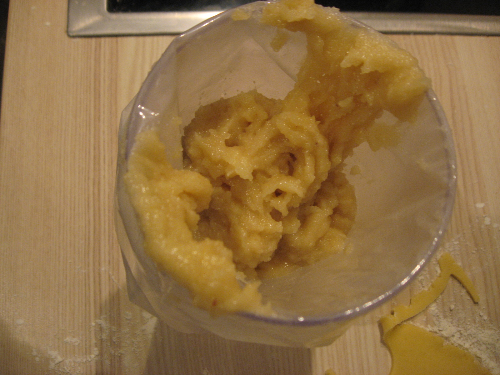 Den Teig nochmal durchkneten und auf einer bemehlten Arbeitsfläche ca. 3mm dünn ausrollen.