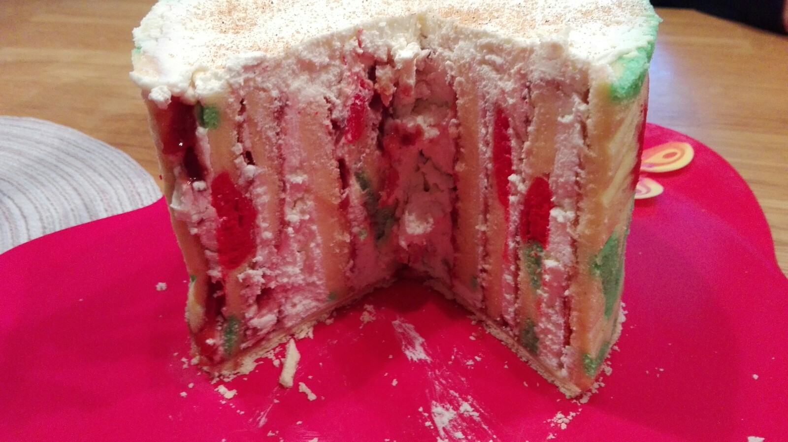 und ich dann nur 3x den Biskuit durschneiden konnte. Somit ist die
