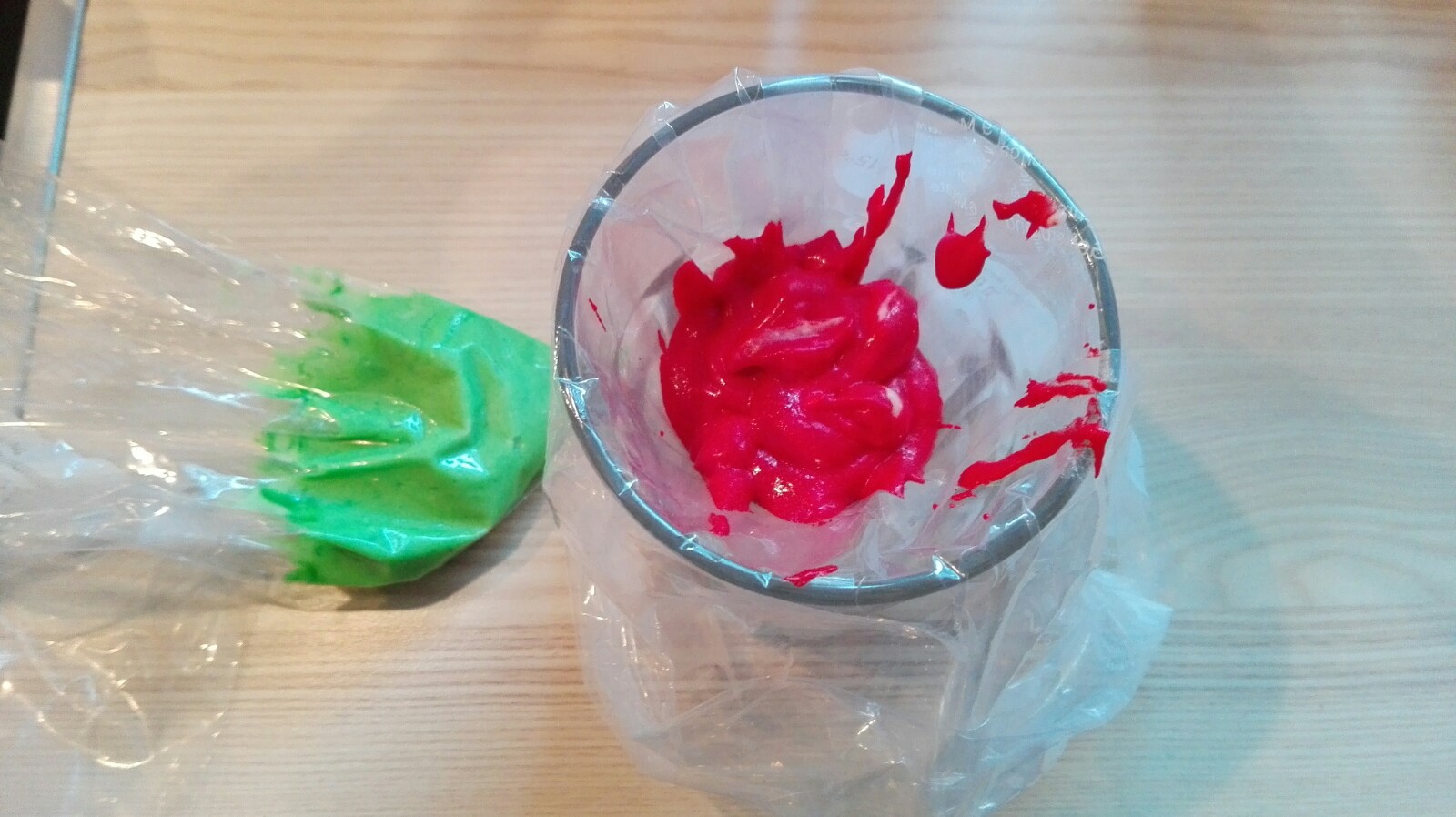 habe ich mit grüner Lebensmittelfarbe gefärbt, den zweiten Teil mit