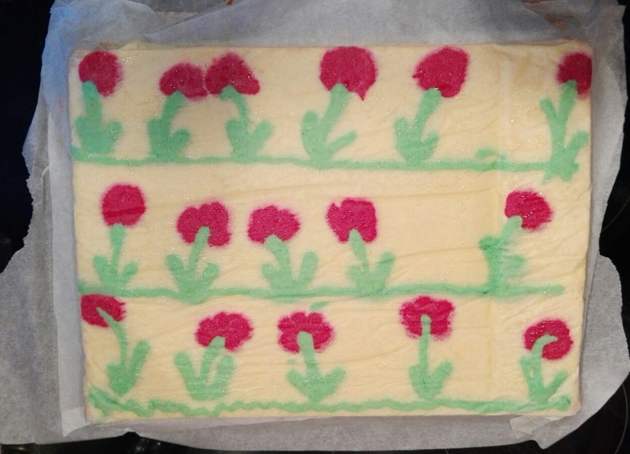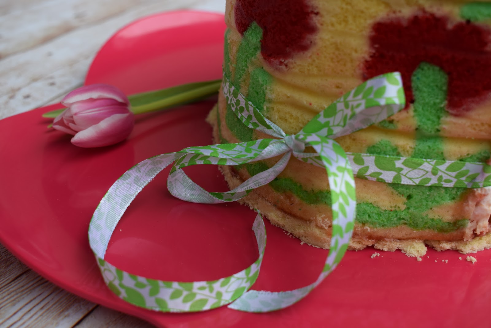 Als Gastbeitrag habe ich eine Wickeltorte mitgebracht, die ich eigentlich schon lange machen wollte. Und so hat es sich wunderbar angeboten, mal wieder zu backen. Für diesen tollen Anlass sollte es natürlich nicht eine normale Wickeltorte sein, sondern eine mit Wow-Effekt. Nachdem jetzt auch endlich der Frühling angekommen ist, sollte es natürlich auch etwas Farbenfrohes, Buntes werden. Also warum nicht ein Muster auf die Torte bringen 😉