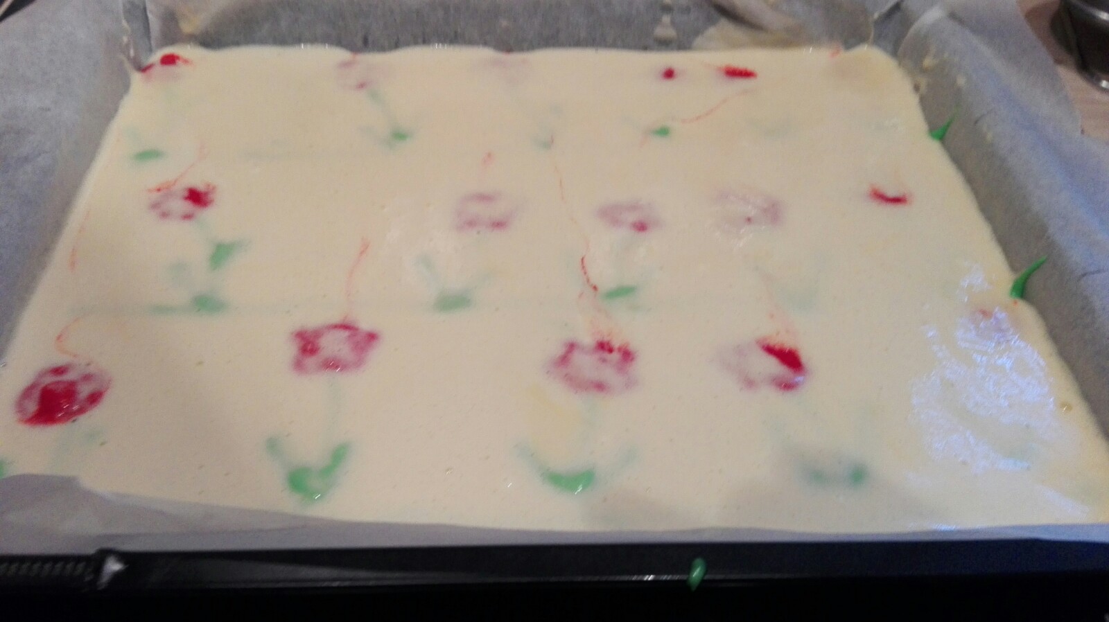 Farben gearbeitet habe, habe ich den Teig halbiert. Die erste Hälfte