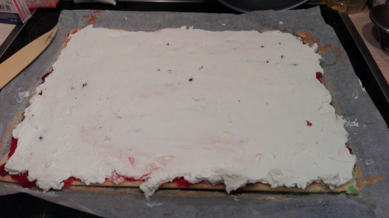 Rest der Creme nun oben aufstreichen, damit ein schöner Abschluss