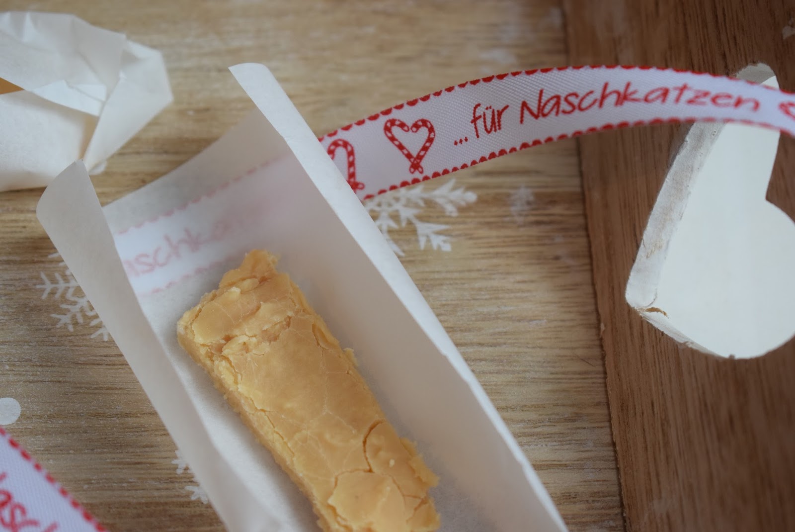 Das Karamell schmeckt wie die Bonbons die man im Supermarkt kaufen kann und sind noch schön saftig und nicht zu trocken.