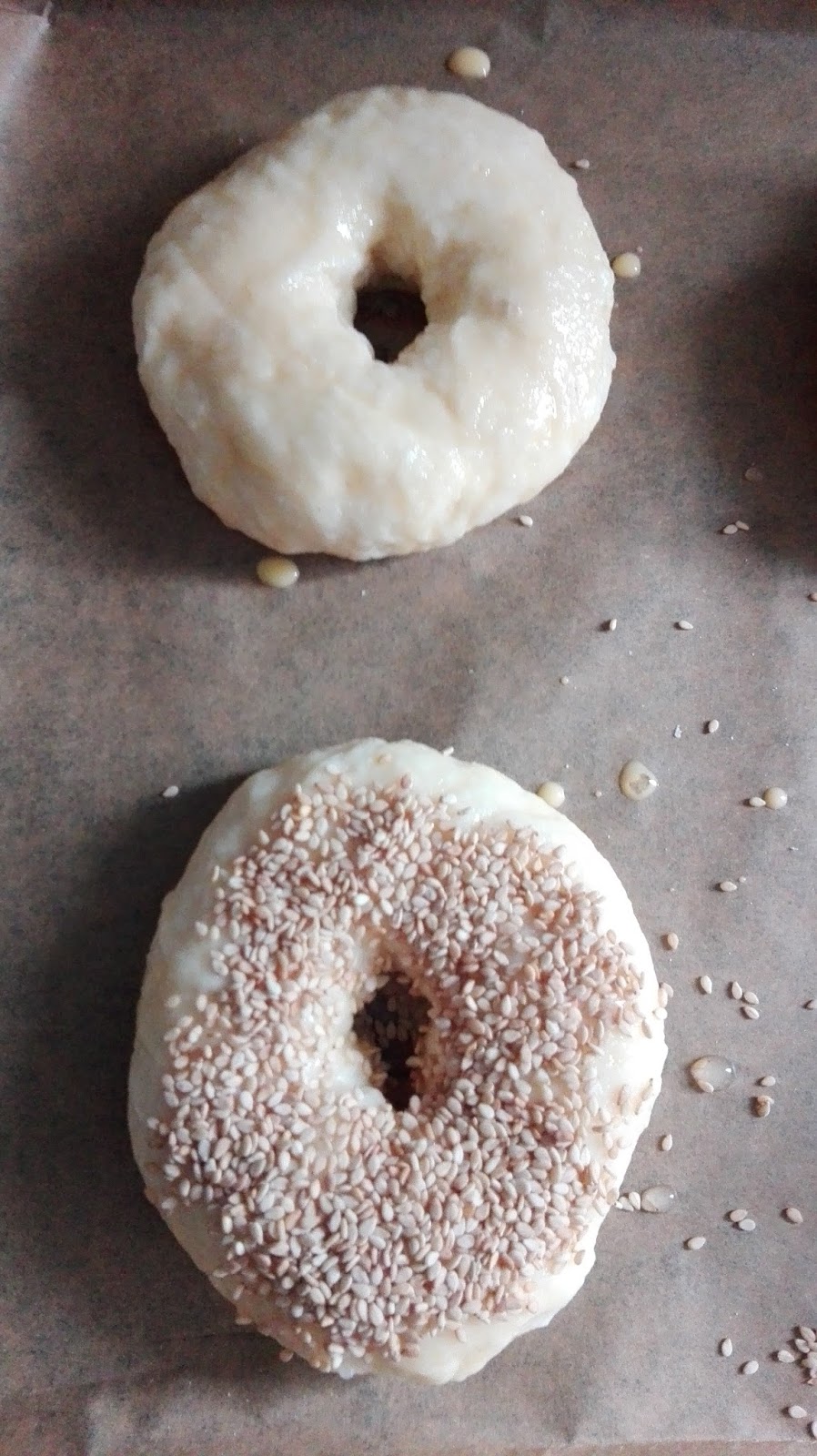 Bagels im Ofen ca. 20 Minuten backen bis sie leicht braun sind.