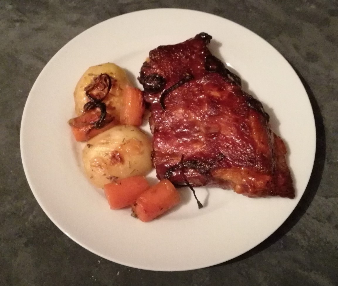 Und das tolle ist, im Ofen kann man die Beilage gleich mit zubereiten. Also man muss nicht noch extra dann auch noch eine Beilage zubereiten. Also perfekt – man muss nur rechtzeitig mit der Zubereitung anfangen, denn die Rippchen müssen 24 Stunden marinieren. Aber da muss man ja auch nicht aktiv viel machen 😉