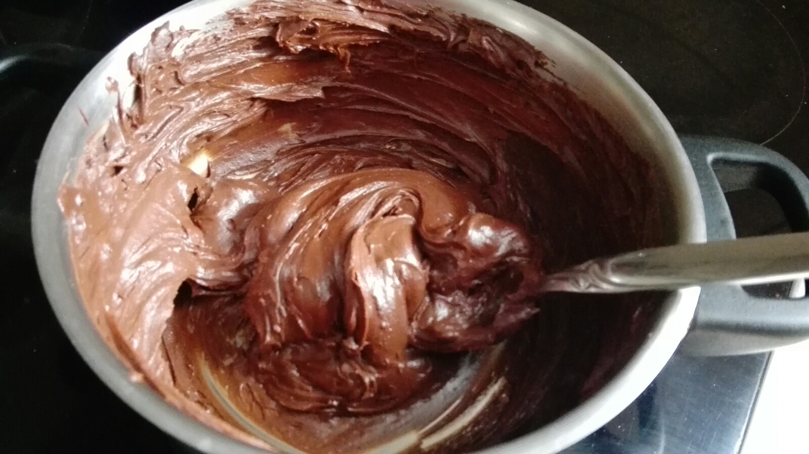 Für die Ganache die Sahne in einen Topf geben und erwärmen, dann die Kuvertüre dazu geben bis die Schokolade komplett aufgelöst ist. Dann die Masse wieder abkühlen lassen und dann nochmal kurz aufschlagen.