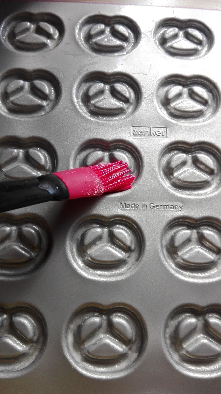 Ich hatte mich für Trennspray entschieden und dieses dann mit einem Pinsel eingearbeitet, damit auch wirklich alles benetzt ist und sich die Brezeln später einfach lösen lassen.