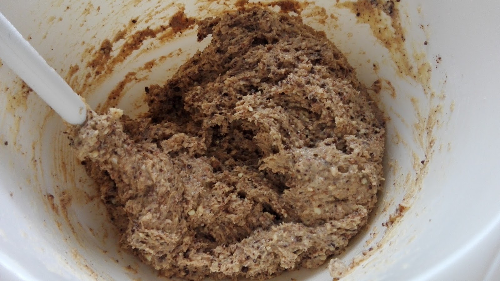 Der Teig sollte nicht zu flüssig sein, aber sich gut verstreichen lassen. Einfach mal testen und mit weniger Flüssigkeit anfangen.