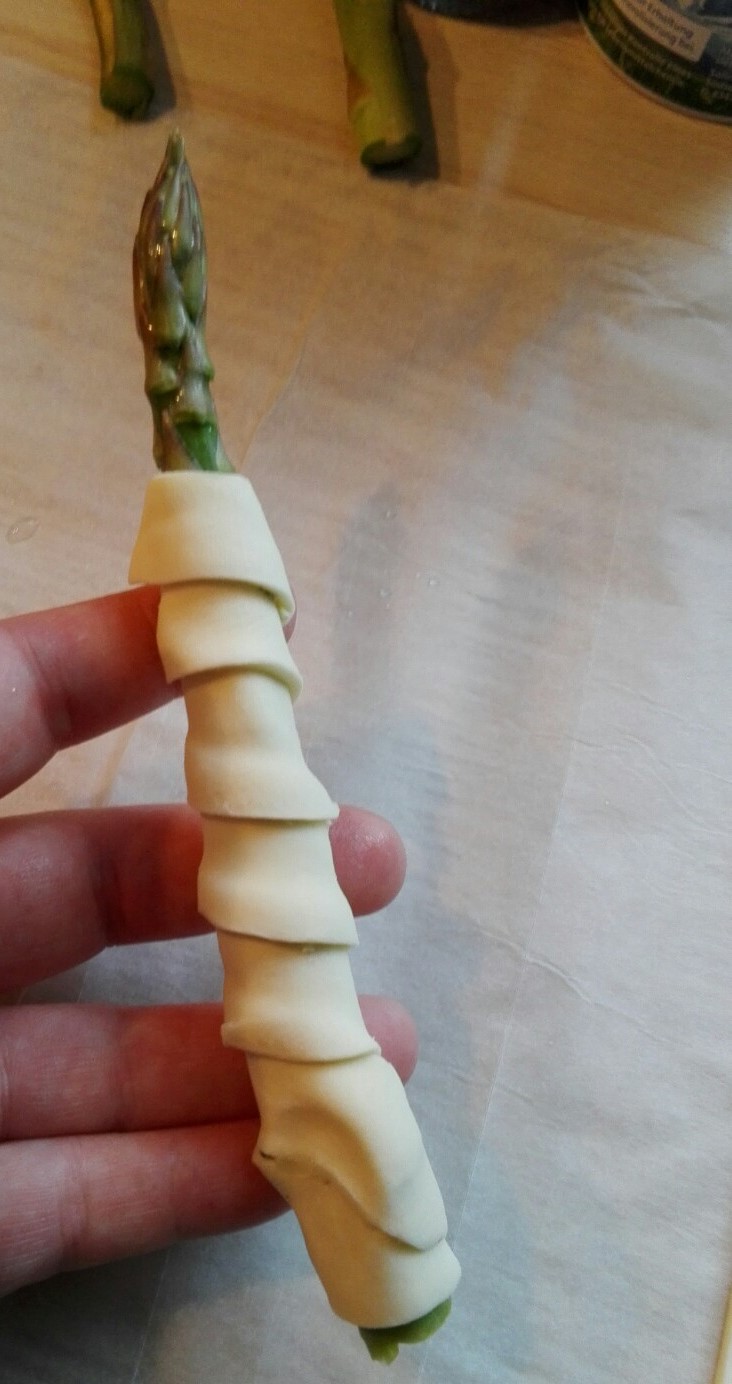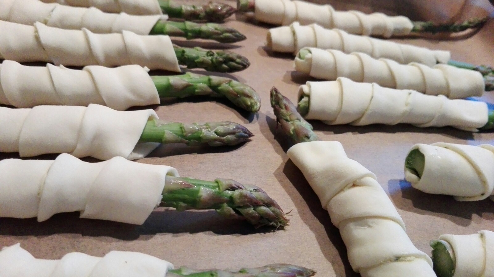 Ich bin eigentlich beim Einkaufen darauf gekommen, den Spargel einfach mal in Blätterteig zu wickeln. Keine Ahnung ob ich es unterbewusst irgendwo im WWW schon mal gesehen habe, oder ob es meine eigene Eingebung war, aber ich konnte es mir schon richtig vorstellen als ich die Zutaten im Einkaufswagen hatte 🙂