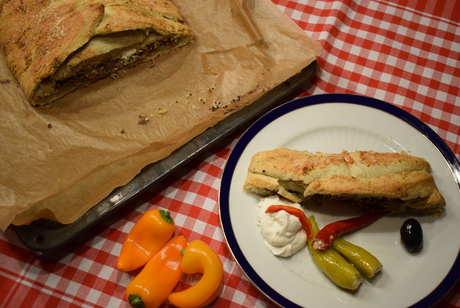 Und schon ist ein leckeres Essen fertig. Dazu passt ein Salat, oder wie in unserem Fall ein paar gefüllte Peperoni. Der Stromboli ist so sättigend, dass wir ihn das nächste Mal machen, wenn Gäste da sind. Da wir jetzt noch ein paar Tage an daran essen.