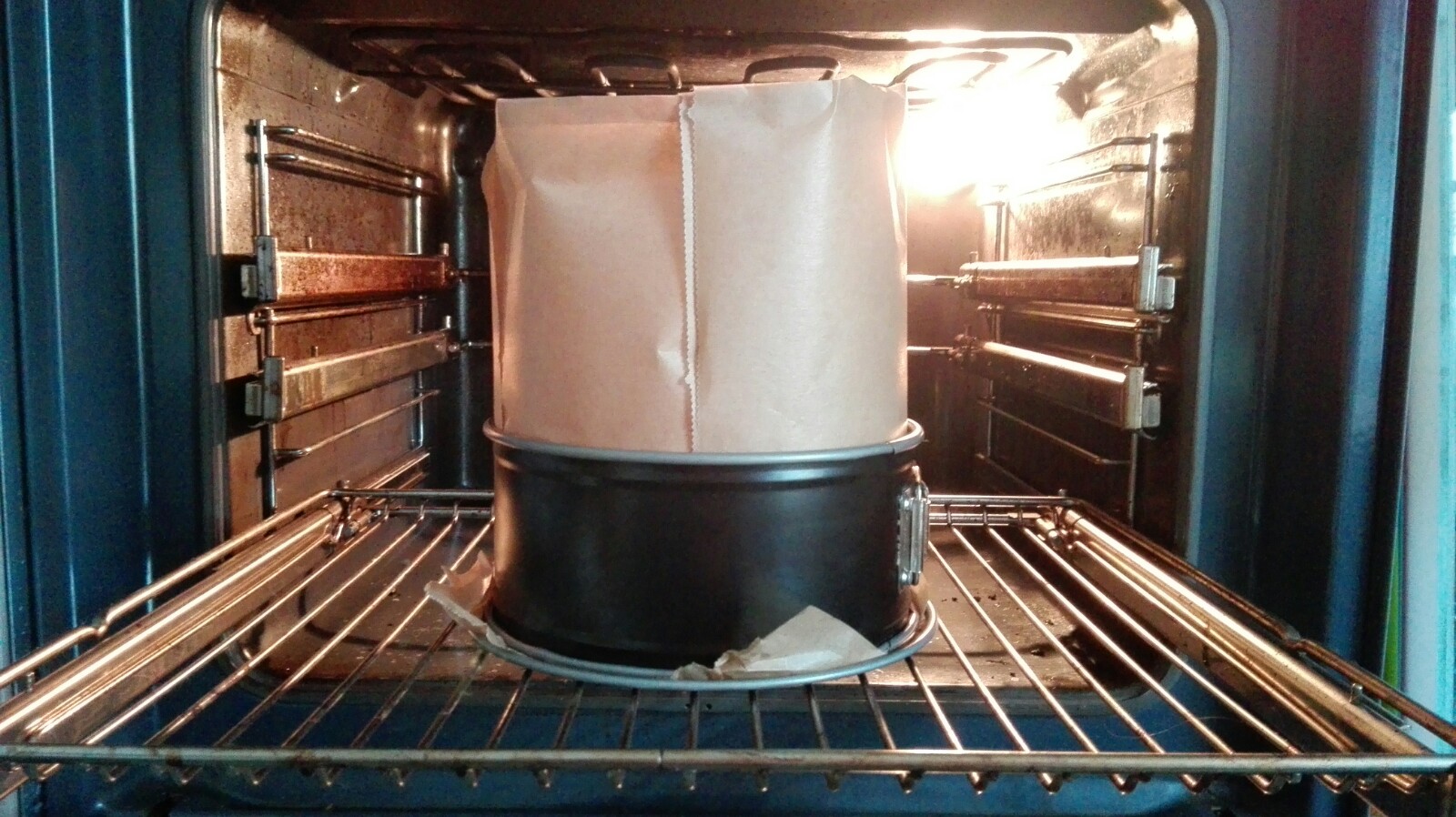 Da ich keine Panettone-Form habe, habe ich meine kleine Springform mit 18cm genommen und diese komplett mit Backpapier ausgekleidet.