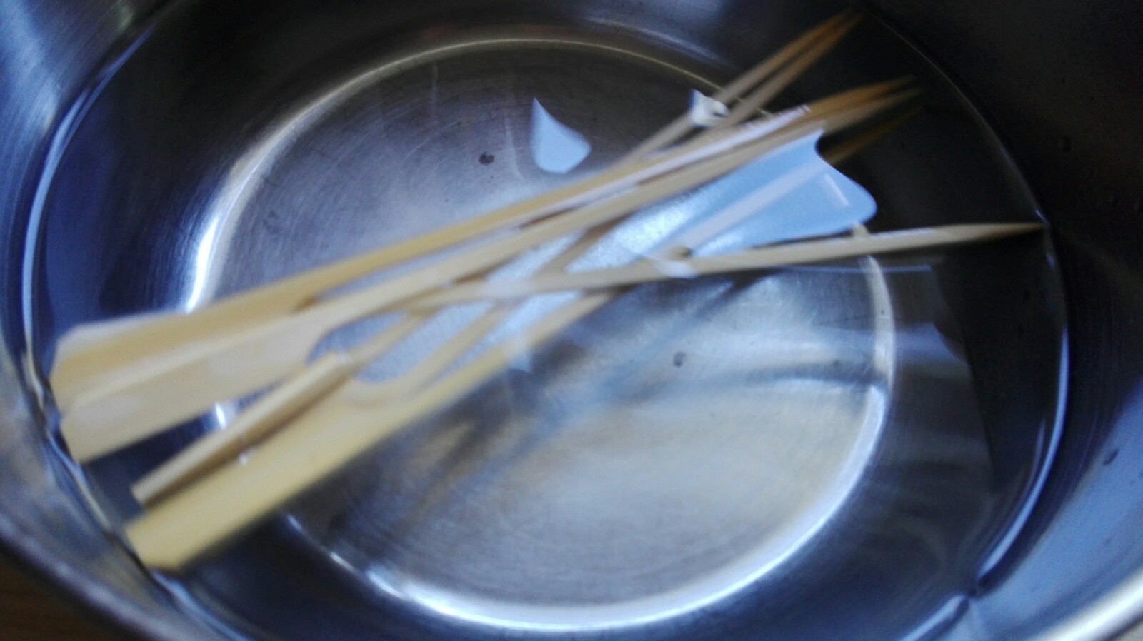 Eine halbe Stunde bevor man die Garnelenspieße benötigt, die Holzspieße wässern.