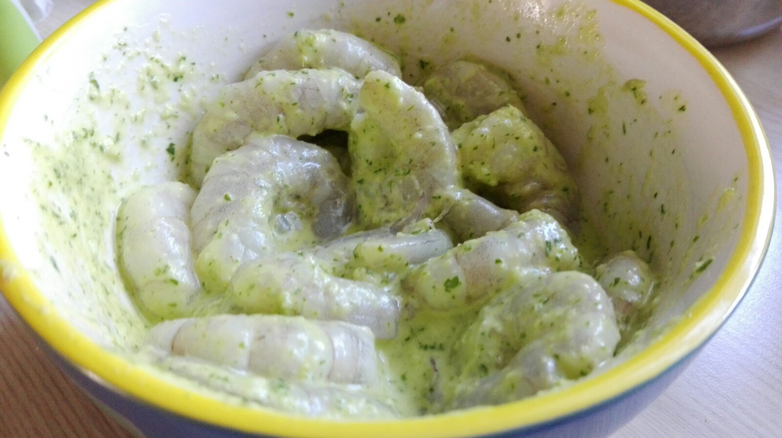 Die restliche Marinade habe ich dann noch über die Garnelen gegeben.