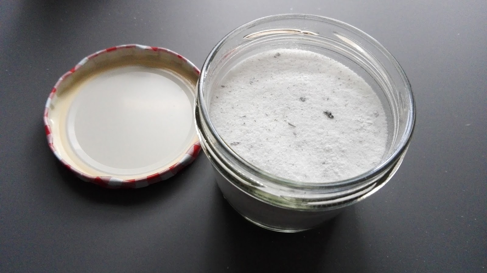 Anschließend habe ich sie gemahlen und mit Zucker gemischt. Ich hatte den Zucker noch kurz mit in dem Mixer, so ist ein sehr feiner Zucker entstanden. Wenn man hier noch wenige Sekunden länger mahlen würde, hätte man einen Vanillepuderzucker.
