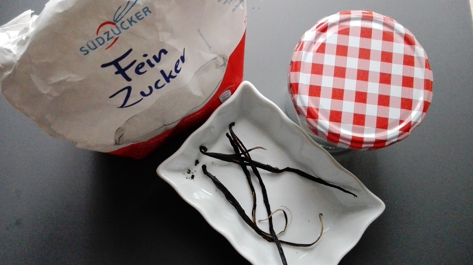Eine ganz eine Methode ist es, ein Schraubglas mit Zucker zu füllen und eine ausgekratzte Vanilleschote hineinzulegen und einfach ein bisschen ruhen lassen.