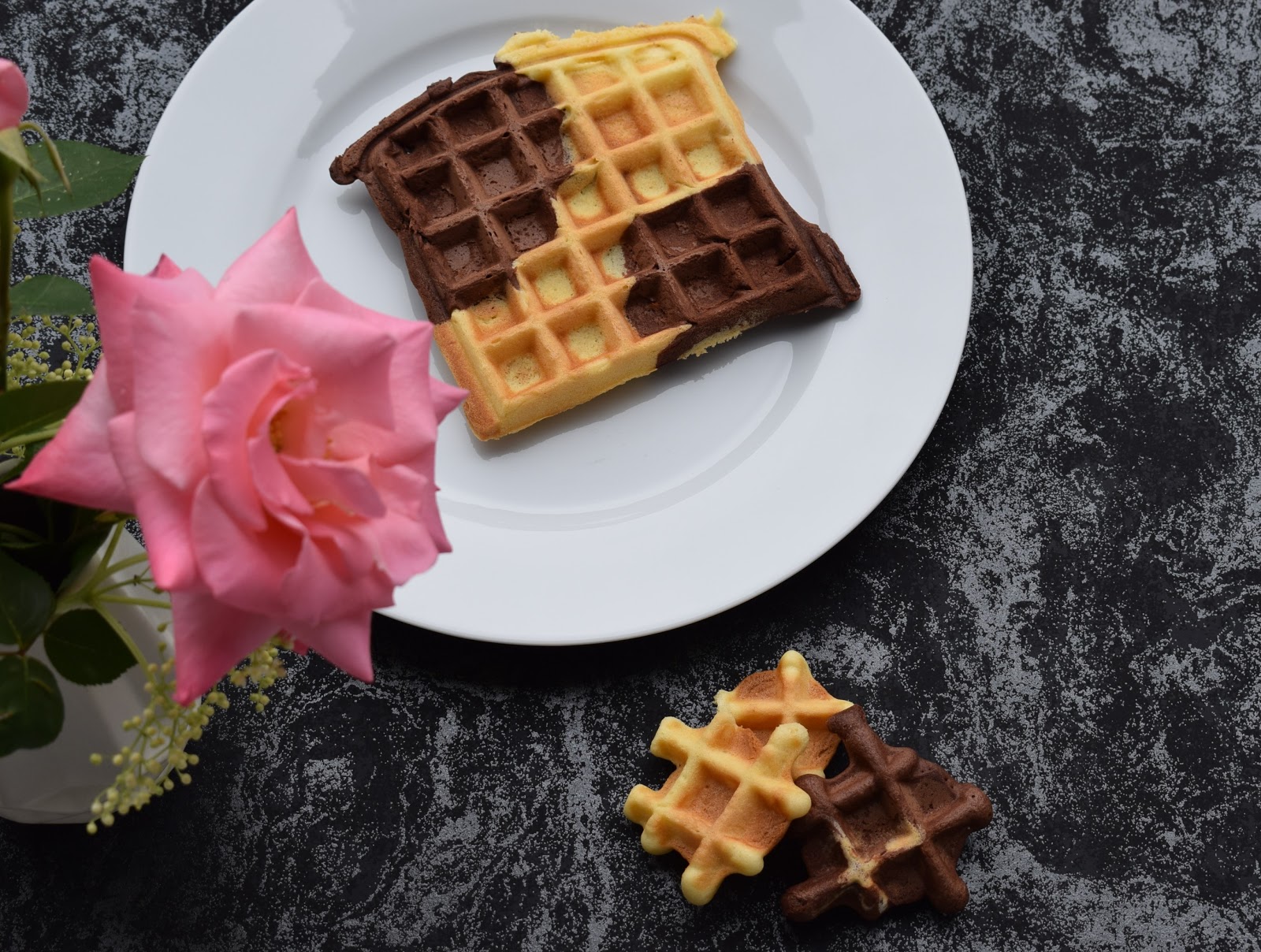 Wer einen Teil der Waffeln mit Kakao einfärben will um die Mamorwaffeln zu machen, nimmt ca. die Hälfte des Teiges und gibt ihn in eine sep. Schüssel. Nun Kakao unterrühren und die Konsistenz mit etwas Rum verdünnen.