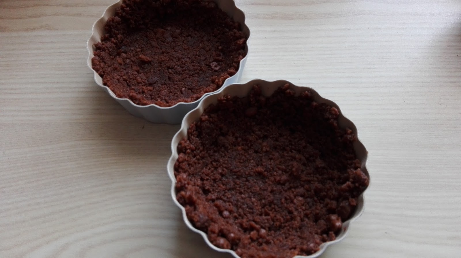 Nun die Formen für mind. eine Stunde in den Kühlschrank stellen. So wird die Butter wieder fest und der Boden ist dann für die weitere Verarbeitung vorbereitet.
