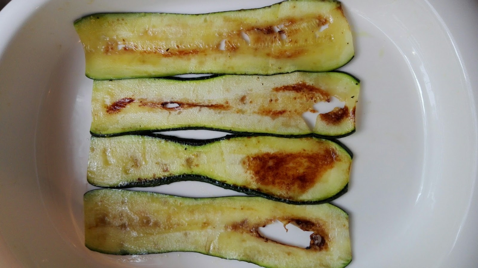 Als erste Schicht kommen Zucchini.