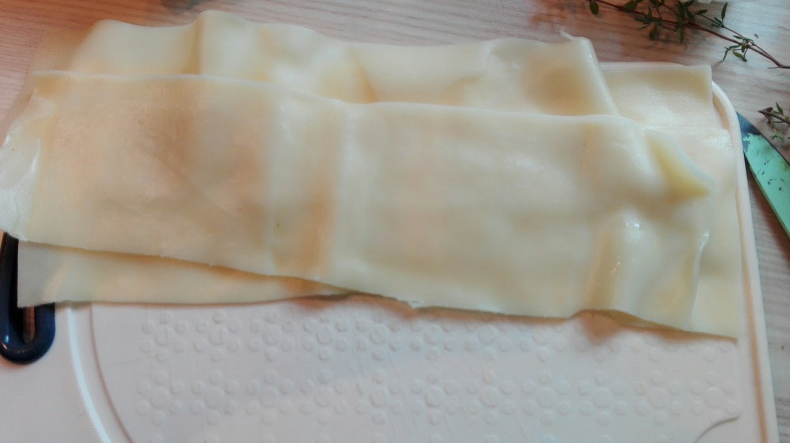 Wenn die Lasagne-Blätter fertig sind, sie der länge nach auf Größe der Zucchini-Scheiben zuschneiden.